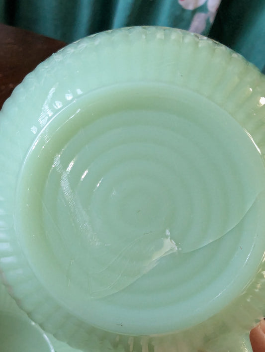 Alice jadeite cup (not for use) and 2 saucers (see description)