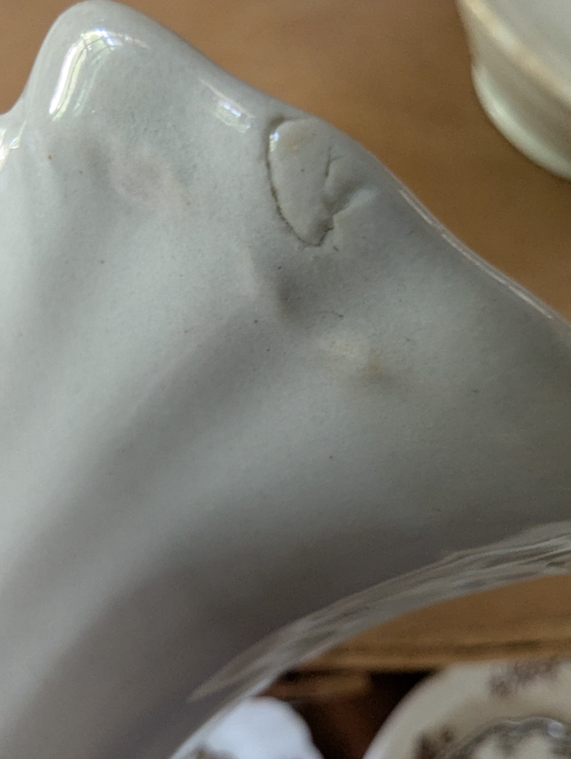 Some discoloration and small mature chips.Joseph Clementson established his pottery business in Hanley, England, in the mid-19th century, later joined by his sons to form Clementson Brothers.