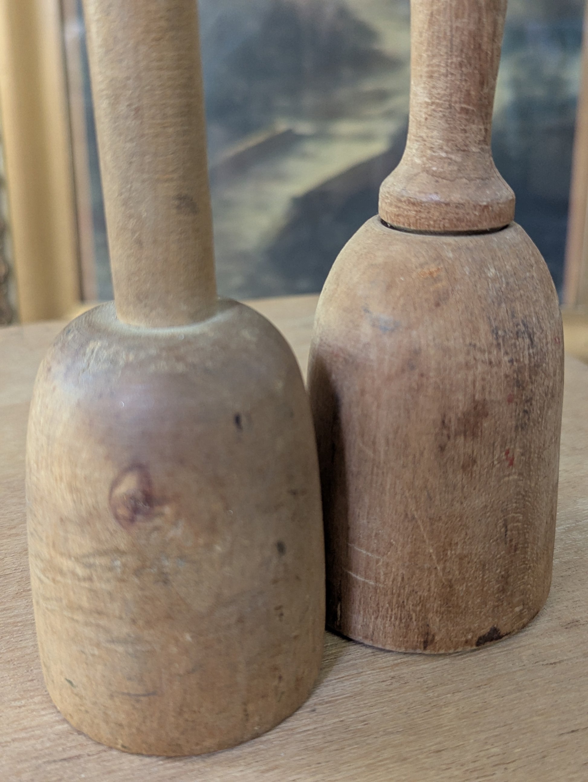 Pair of wood potato mashers