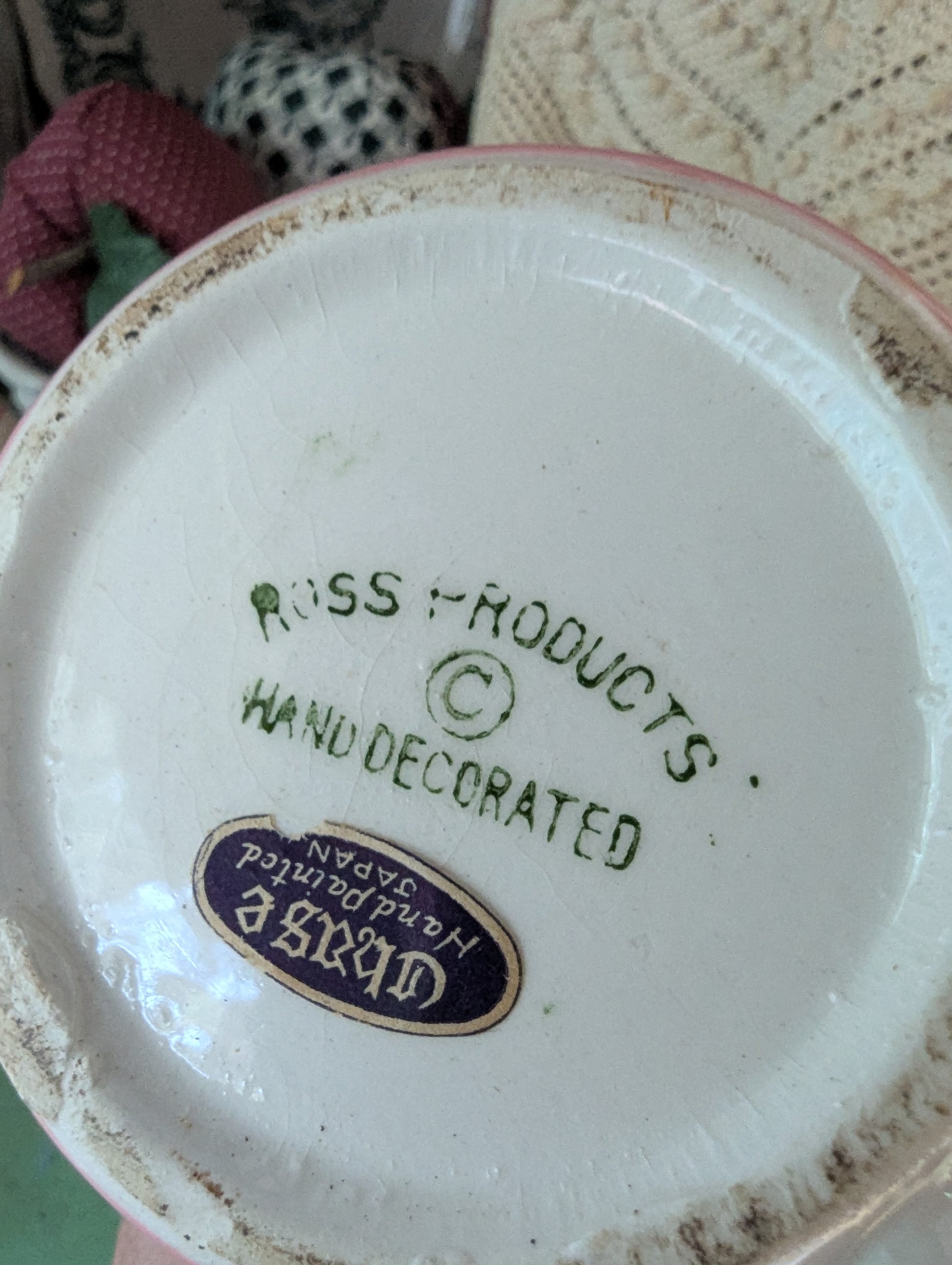 Made in Japan by Ross Products in the 1950s. Sticker is present along with marking on bottom.